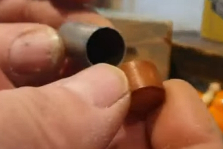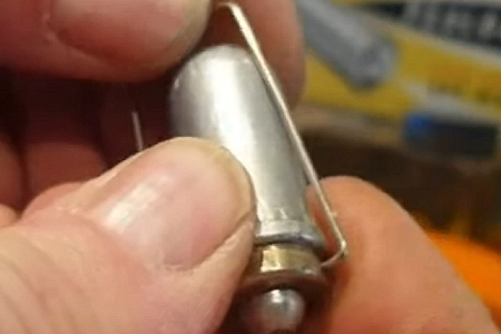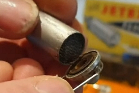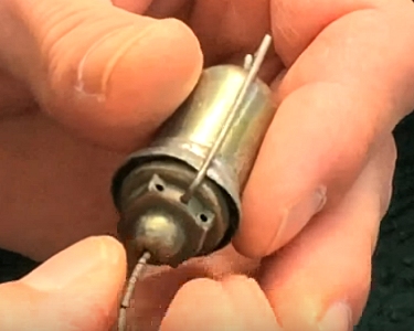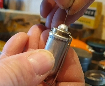 Hierboven: aanbrengen van het gaasje in de Jetex motor om het lont